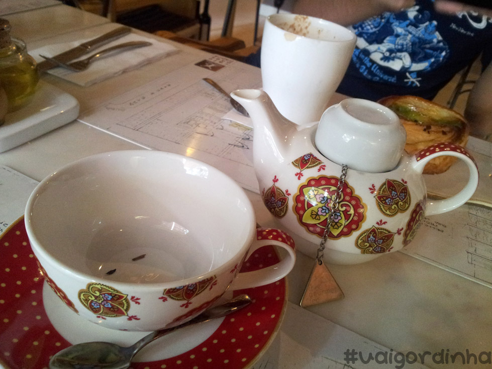 Estava muito afim de tomar um chá de qualidade porque não gostei do chá de hibiscos do Arábia e lá eles faziam chás do Gourmet Tea, uhul! Mesmo com o calor, curti o meu Black Royal Blend. Pena que eles não tinham todas as opções e nem o coador sytle com timer digital (a.k.a. frescurinhas, heh).